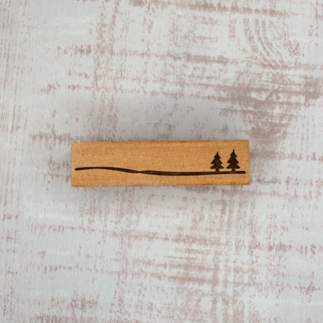 緩やかな曲線のラインと2本のもみの木が並んでいるとてもシンプルなデザインです。