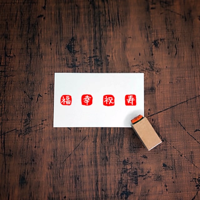 おめでたい文字を一文字、落款風のゴム印にしてみました。